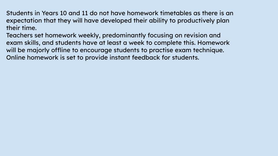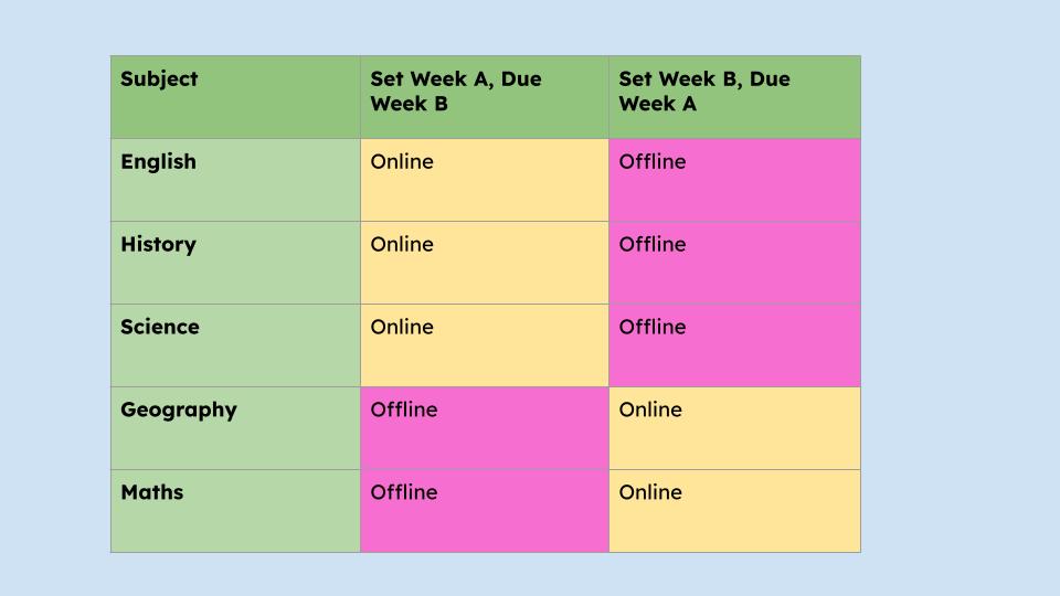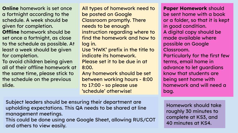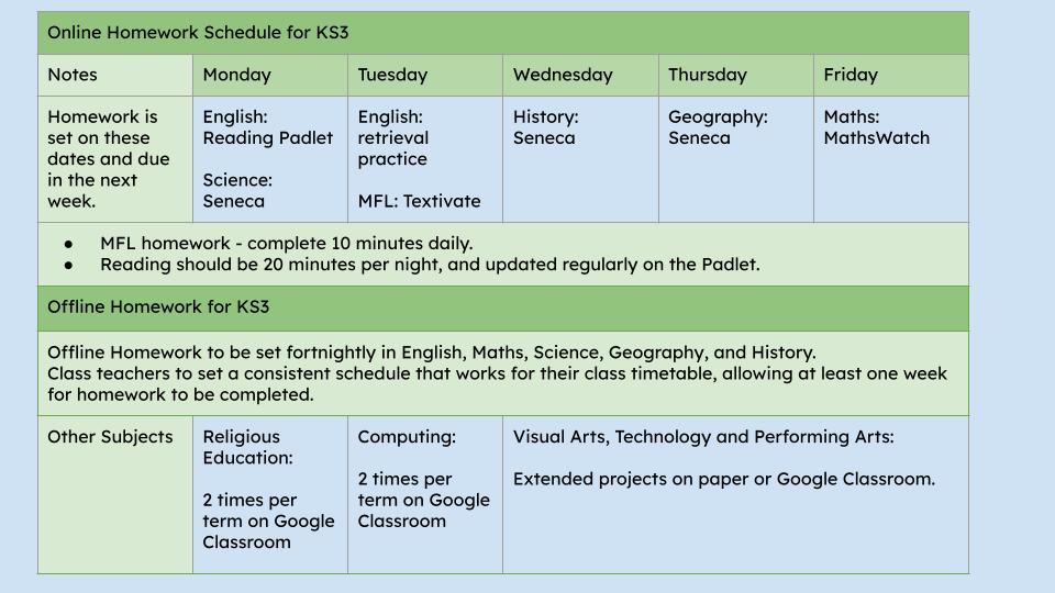 Homework Schedule for KS3: